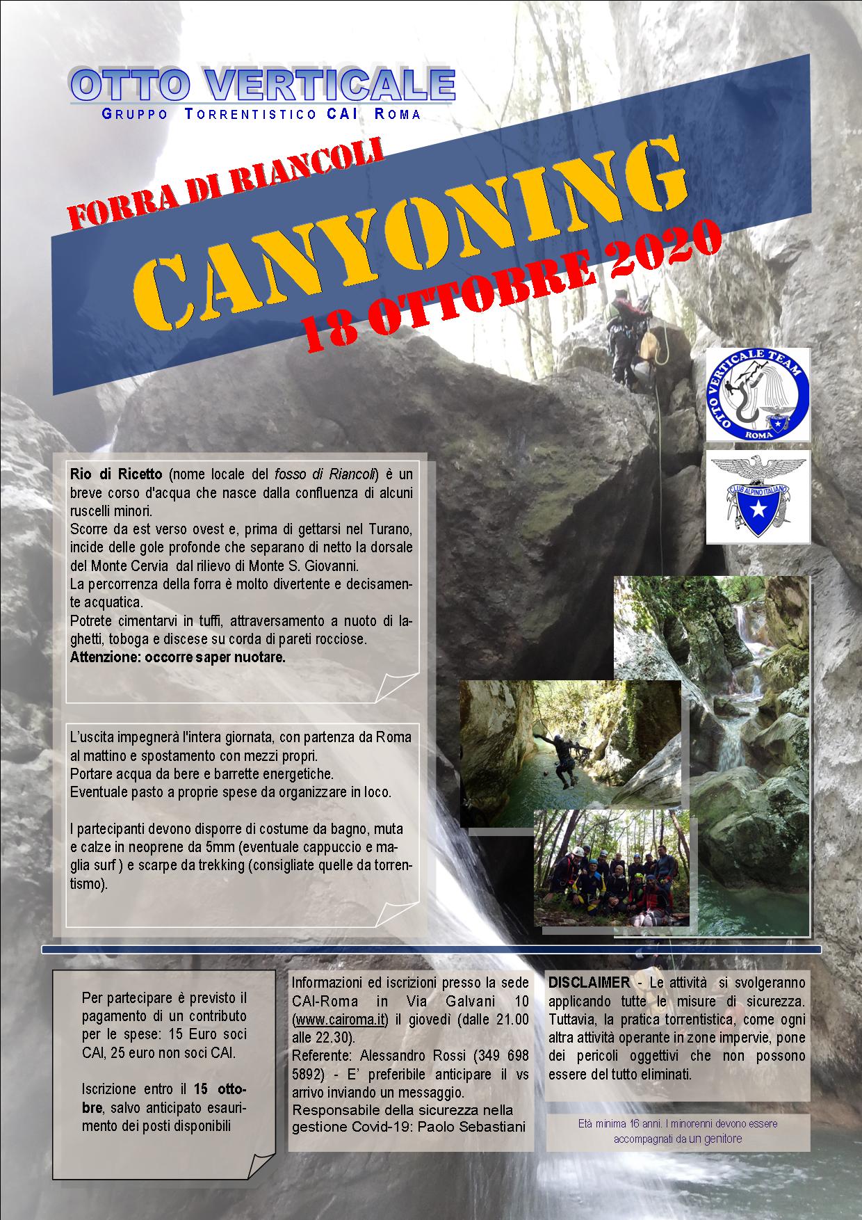 I partecipanti devono disporre di costume da bagno, muta e calze in neoprene da 5mm (eventuale cappuccio e maglia surf) e scarpe da trekking (consigliate quelle da torrentismo).