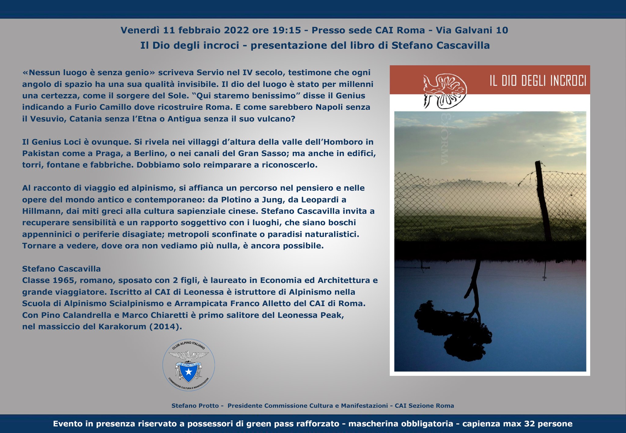 Evento in presenza, presso la Sede del CAI di Roma, in via Galvani n.10, riservato ai possessori di Greenpass in corso di validità, con mascherina e distanziamento; numero massimo di partecipanti ammesso: 32